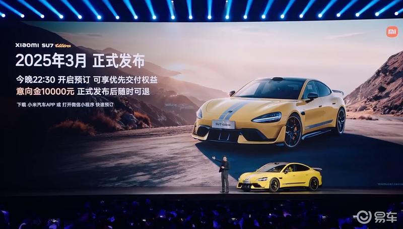 易车讯 10月29日,小米SU7 Ultra量产版开启预售,预售价81.49万元,新车将于2025年3月正式上市。官方表示,小米SU7 Ultra量产版今晚22:30开启小订,可享优先交付权益意向金10000元,正式发布后随时可退。最新数据显示,小米SU7 Ultra量产版开启预售仅10分钟小订就突破了3680台。