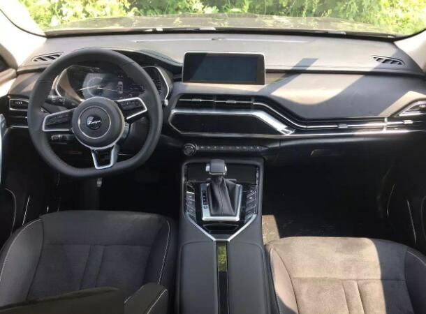 内饰方面,众泰T500采用了黑色和米色的双色搭配,居家动感两相宜。新车中控台按键布局较为简约,搭载了大尺寸悬浮中控屏,并采用玻璃镜面不规则触控屏,科技感爆表。此外,新车还搭载三辐式多功能方向盘,基本集成了日常用到的所有功能按键,同时仪表盘设计也较为时尚。不过,众泰T500内饰设计的最大亮点是采用了梯形换挡杆,这也是众泰在旗下车型中首次采用。
