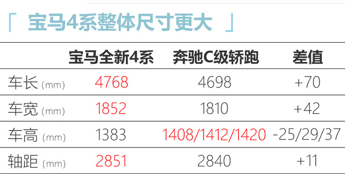 另外就产品素质而言,和老对手奔驰C级轿跑相比,换代后的宝马4系不仅在外观上略胜一筹,更大的车身尺寸以及更强的动力参数也是其一大优势,其搭载的2.0T高低功率发动机分别领先奔驰对应1.5T、2.0T动力。