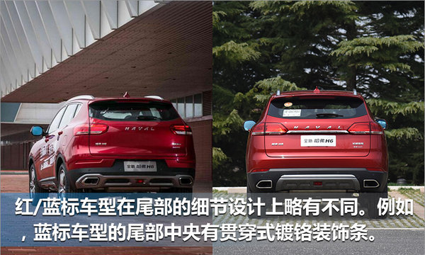 全新哈弗H6分为红/蓝标两种车型,最大的不同是进气格栅的面积。侧身双腰线搭配上扬式车窗设计,凸显力量感。车尾部分,红/蓝标车型尾灯的样式以及后保险杠造型也都各有千秋。此外,蓝标车型在尾部中央装饰有一条贯穿式镀铬式条。新车车身尺寸为4600*1860*1720mm,轴距为2680mm,在高度、宽度方面优于现款车型。