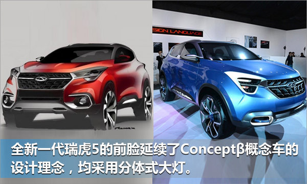 奇瑞汽车前不久发布了内部代号为T17的全新SUV车型的设计草图。网上车市从奇瑞汽车官方获悉,T17正式更名为全新一代瑞虎5。新车高度还原了Conceptβ概念车的设计语言,将于4月19日上海车展首发亮相。