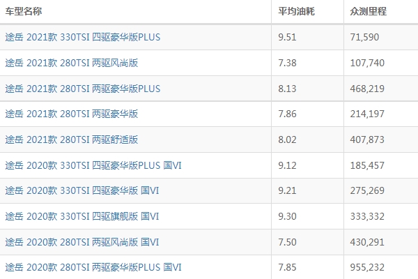 大众途岳是一款定位于中高端市场的紧凑型suv,这款suv不仅功能配置丰富,而且各方面性能表现非常不错,拥有这家用充沛的动力性能以及较高的燃油经济性,那么大众途岳油耗怎么样?来看看车百科网给出的油耗实测。