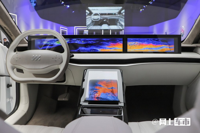 新车提供6种车身颜色、3种内饰颜色,前脸采用封闭式造型搭配DLP光迹投影大灯,车侧采用无边框车门与隐藏式门把手设计,车尾装配贯穿式尾灯,时尚造型搭配490mm超低重心,不乏运动气息。智己L7车内采用可升降的39英寸组合屏幕及12.8英寸AMOLED 2K超算中枢屏,三屏一体式联动设计还支持跨屏交互体验。