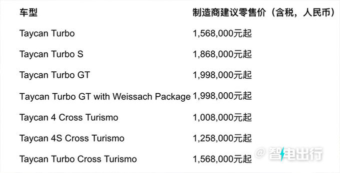 4月10日,保时捷新款Taycan、新款Taycan Turbo Cross Turismo开启预售,售价区间为100.8-199.8万元,Taycan顶配车型较老款最高上涨18万元。