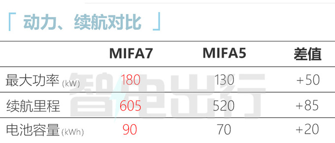 新车定位介于MIFA5和MIFA9之间,结合它们的定价来看,预计MIFA7的起售价将在22.98万元左右,上市后将与广汽传祺E8竞争。