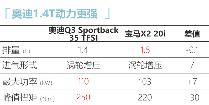 近日网上车市从奥迪经销商处获悉,Q3 Sportback将在5月底正式上市,目前新车已经陆续到店。作为奥迪首款国产轿跑SUV,Q3 Sportback的尺寸、动力相比宝马X2和奔驰GLA优势明显。价格方面,考虑到新车的尺寸更大,同时结合X2(26.68万起)、GLA(26.48万起)的售价来看,预计Q3 Sportback起售价在28万元左右。