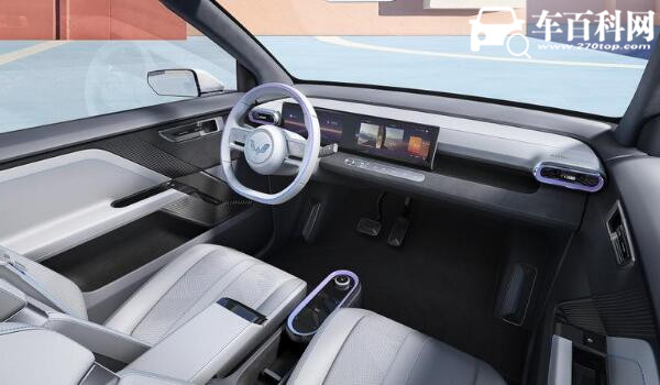 宏光mini ev敞篷车的内饰采用的是环绕式的设计语言,灰白的双色拼搭,显得比较清新淡雅,再加上中控台上装饰的撞色点缀,虽然配置简单了一些,只有双10寸屏联与副仪表,但是整体看起来非常的舒心。