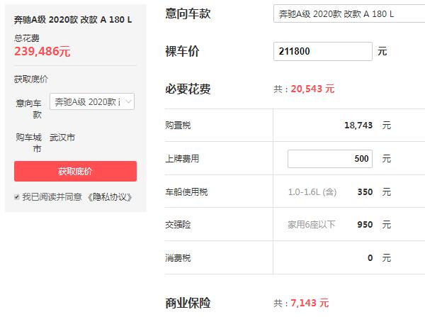 按照奔驰a系2020款 改款A180L价格21.18万元计算,需要缴纳18743元的购置税,500元的上牌费用,950元的交强险,350元的车船使用税,7143元的商业保险,最后奔驰a系的价格合计是23.95万元。