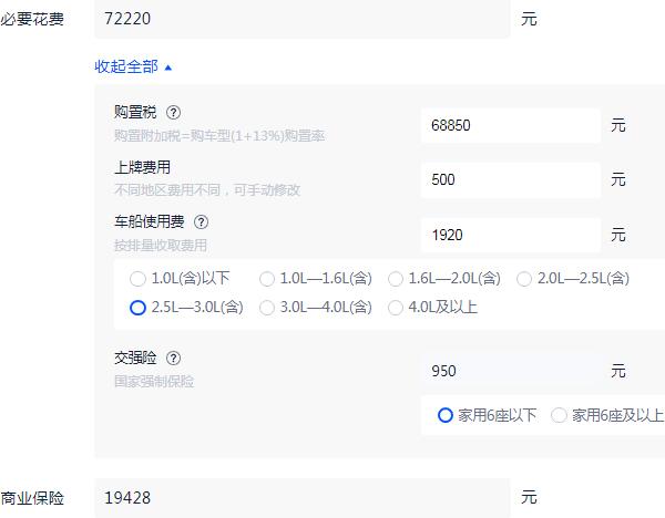 通过上面讲述路虎卫士2021款报价的话题,我们可以计算出如上图所示路虎卫士的落地价格。以裸车价为77.8万元计算,花费购置税68850元,上牌费用500元,车船使用税1920元,交强险950元,以及商业保险费用19428元,最终得出路虎卫士2021款的落地价格为86.96万元。