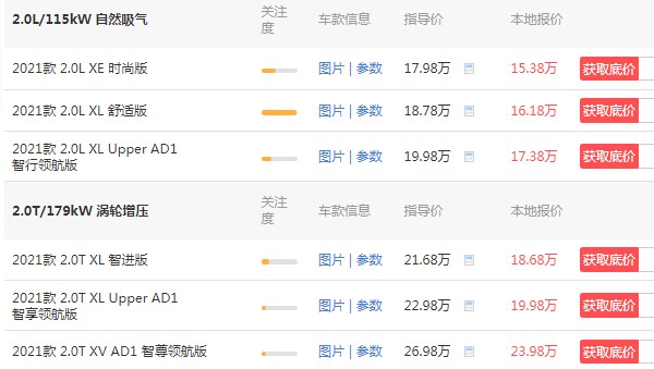 2021最新款日产天籁共有六款在售车型,其指导价格为17.98-26.98万元,下图为日产天籁2021款所有在售车型及价格的详细内容。可以看到每款车型均有一定的降价优惠,其中天籁时尚版价格最便宜,该车型经过优惠后的裸车价格为15.38万元。