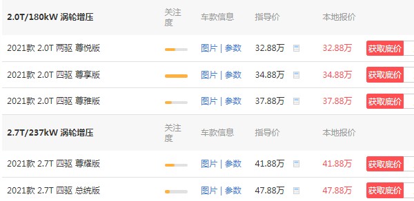 2021款售价32万