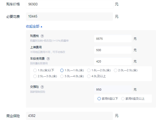 沃兰多的入门车型自动劲享版官方售价13.69万元,裸车最低报价9.69万元,那么沃兰多落地价最低多少?全款落地价大概11.17万元起,具体有裸车9.69万,购置税8575,上牌费用500,车船使用费420,交强险950,商业保险4382。