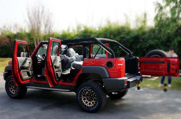 这里要说的是BJ40敞篷版其实是自己改装出来的,很多朋友都知道,北京BJ40车门、顶棚、甚至前档玻璃都是可以自行拆卸的,跟同级别的SUV相比,BJ40没有过多的豪华装饰,但它牛逼之处是在于车身的灵活多变,这无疑也是它的卖点所在,所以价格还是原BJ40的价格。