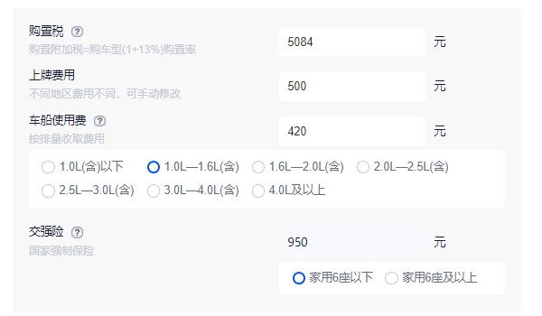 长安CS85 COUPE无论是通过分期的方式购买,还是通过全款的方式购买,必须花费的费用6954元,有车辆的购置税5084元,上牌费用500元左右,车船使用税420元,交强险950元。
