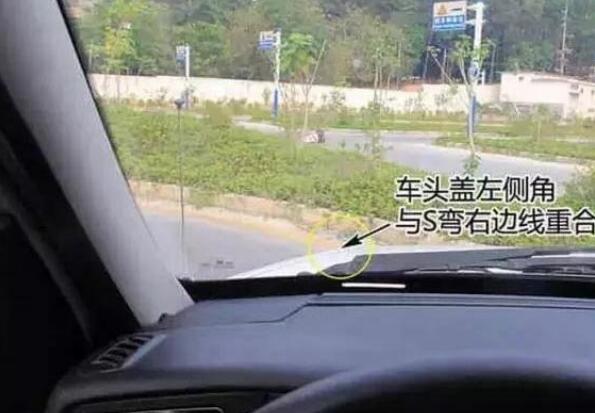 当左车角走完了右边线的距离之后,这个时候需要继续往前走,保持方向不同,等到车头盖右侧顶点碰到S弯向右转弯的左边缘线的时候,回正方向,再慢慢的向前走一会,从科二s弯的四个拐点图解中可以看到这其实是最难把握的一个点。