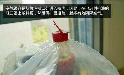 有的时候一桶机油加不完,剩下的自然是保存起来,留着备用,肯定不会土豪的直接扔掉。一般这种机油保质期为一年,而且还需要密封保存好,不需要什么密封的机器,只需要找个薄膜塑料袋,对折之后,套在瓶口上,在拧紧瓶盖,这样的密封效果会更好,当然,依旧要存放在阴凉干燥处。